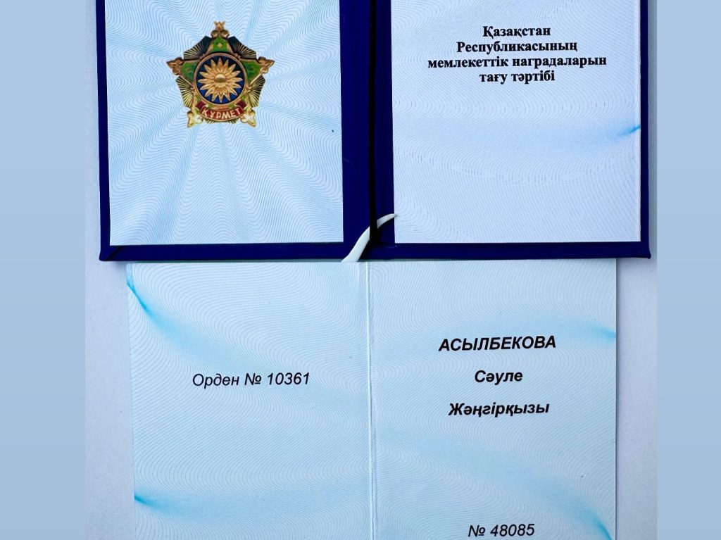 Государственное признание: Сауле Жангировна Асылбекова награждена орденом «Құрмет»